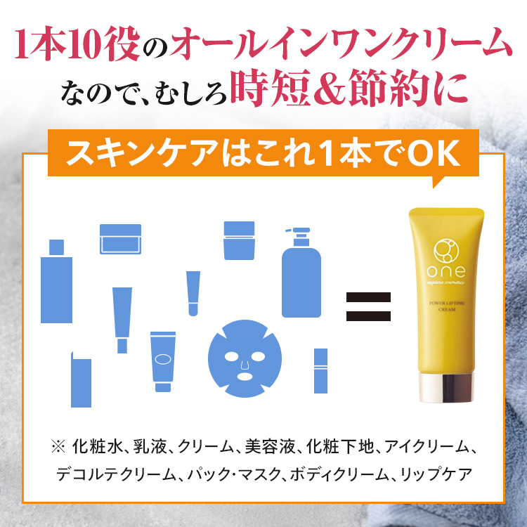 ピーンとハリ感ある、1つで10機能のオールインワンクリームです。